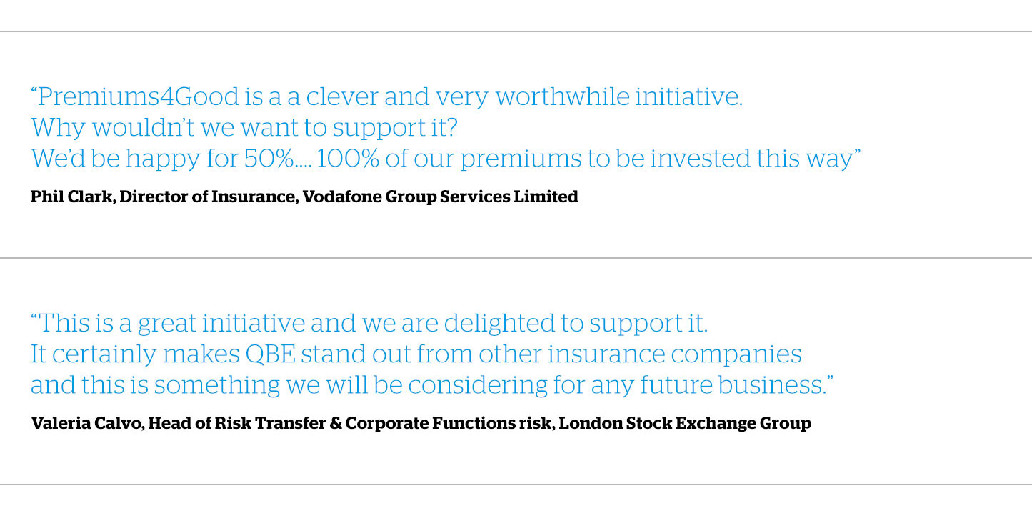 Under our SPI Premiums4Good initiative, we will invest your premium in projects that directly benefit communities or the environment, rather than in general ethical or environmental funds.